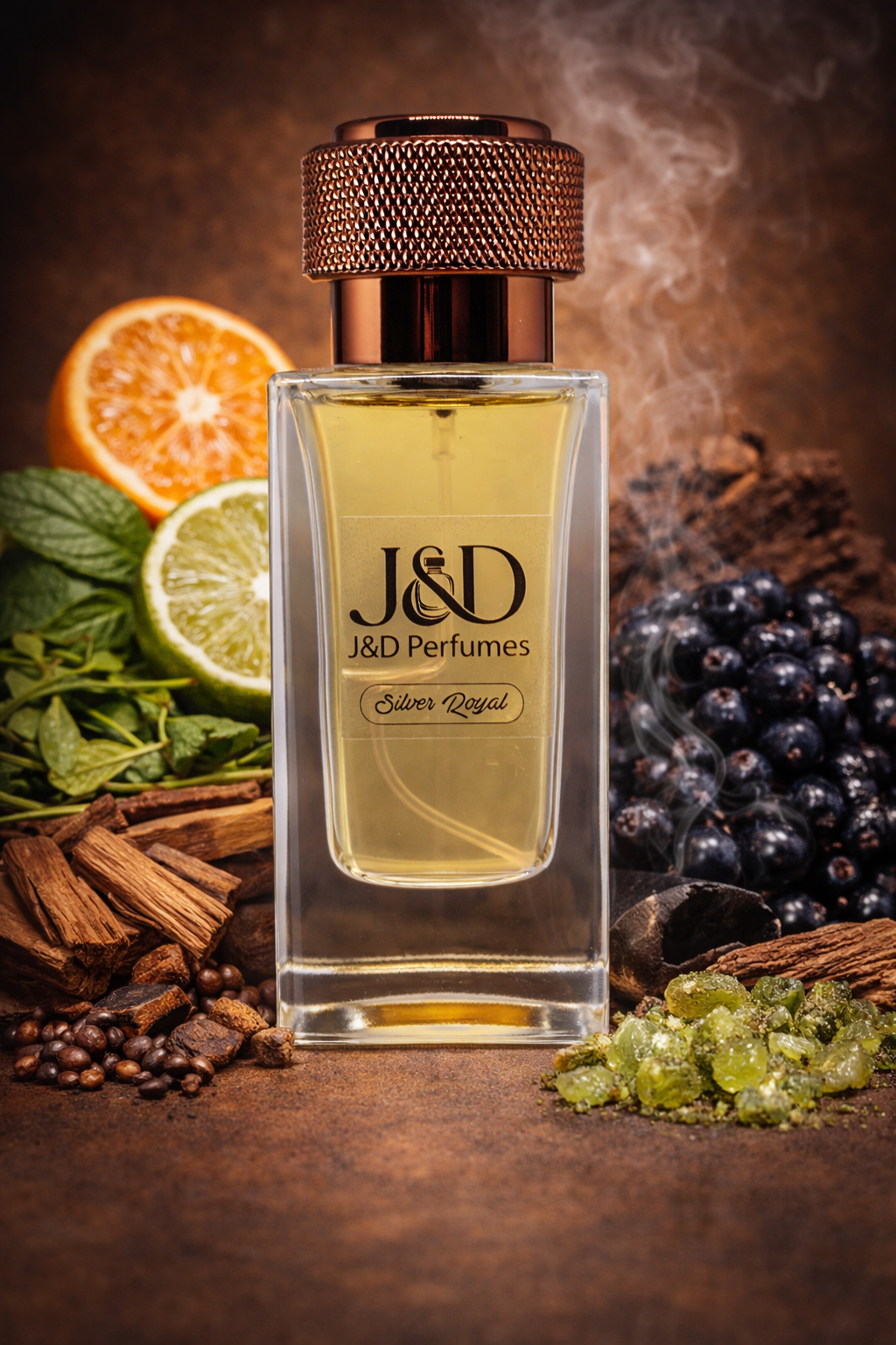 Silver Royal is a sophisticated aromatic fragrance crafted for both women and men. The composition opens with vibrant bergamot and mandarin orange, creating an invigorating top note experience. The heart reveals a refined blend of green tea and black currant, adding depth and complexity. The fragrance settles into a warm, sensual base of musk, sandalwood, petitgrain, and galbanum, delivering a lasting impression that balances freshness with subtle earthiness. An expertly balanced scent suitable for any occasion.